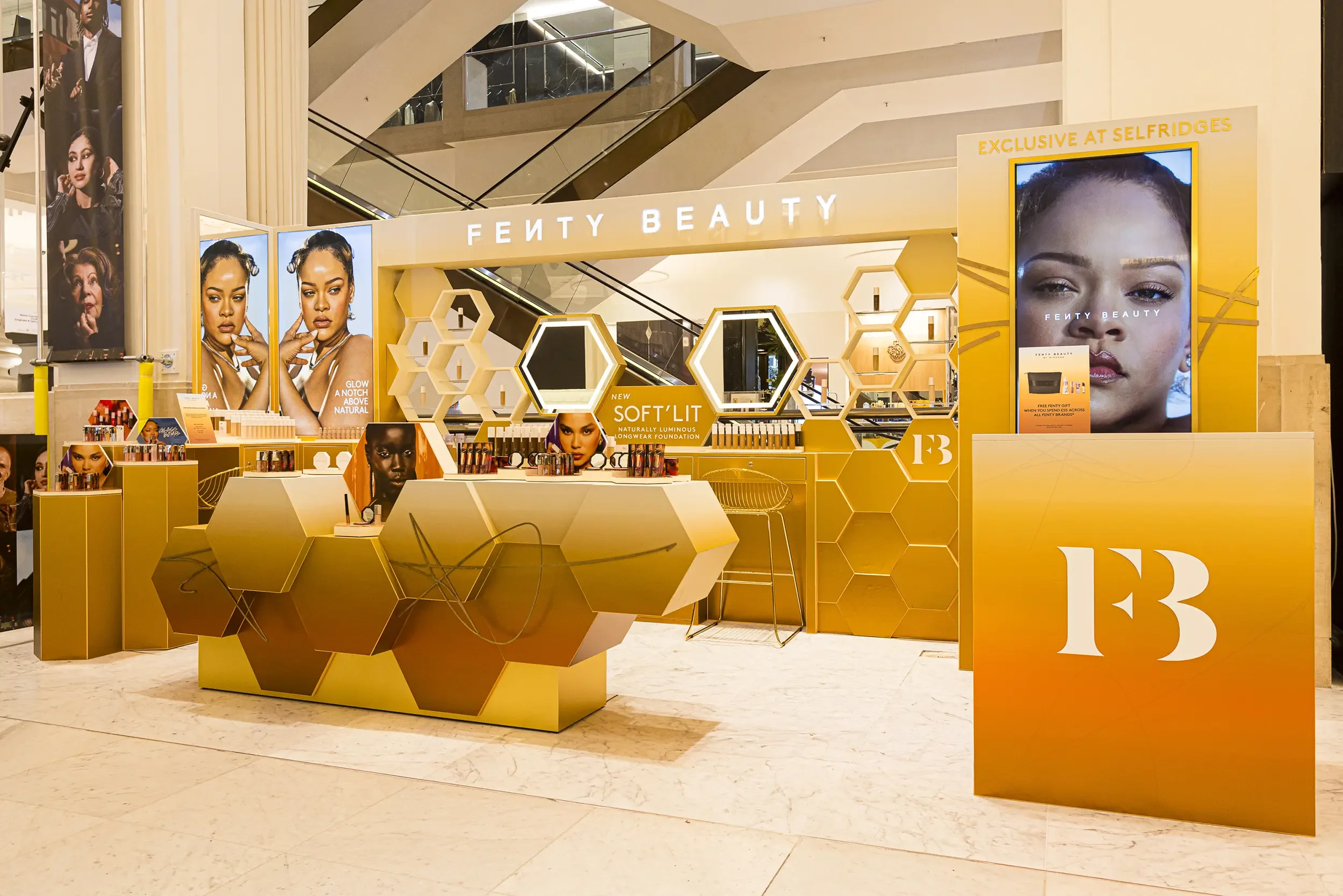 We were tasked with designing an in-store activation for the launch of the Fenty brand at Selfridges, alongside the new Soft’Lit Luminous Foundation. The activation toured two key locations: the Mary-site at Oxford Street and the Dome-site at Trafford Centre, Manchester.
